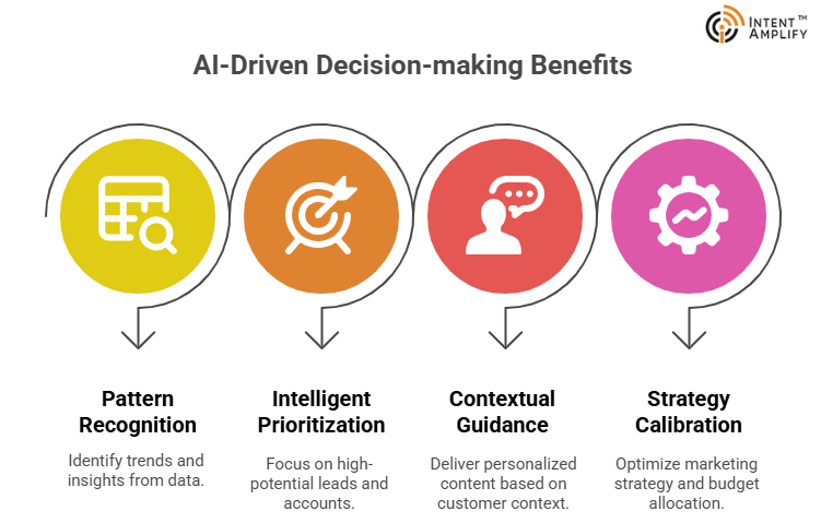 AI platforms can analyze millions of touchpoints along a variety of buyer journeys and pinpoint the behaviors associated with conversion, engagement drop-off, or account growth.